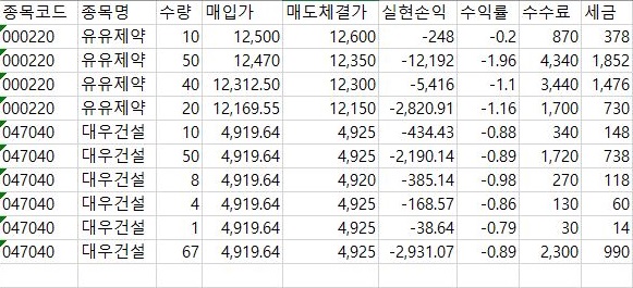 일단 9일날의 결과를 보니까, 수익이 났다고 생각한 것 까지도 가만히 보니, 수수료와 세금을 제외하면 전혀 남는 것이 없다는 것을 알 수 있었습니다.