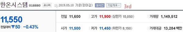 마지막으로 거래량과 가격도 어느정도 적절해 보이는 한온시스템이라는 종목의 주식도 볼 수 있기는 있었습니다. 이제 어느정도 종목을 추렸으니, 정리해 봅니다.