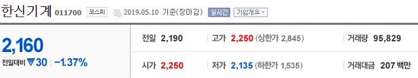 그리고 한신기계라는 종목에 대해서는 가격이 낮은 편이면서 거래량도 상당히 적지만, 뭐라고 해야 할까요? 간신히 거래량이 턱걸이에 걸렸다고 보면 될듯 합니다.