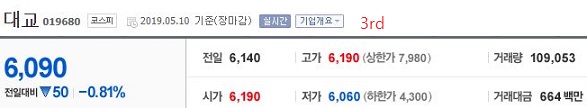 다음으로는 3등급으로 넘어가 보도록 합니다. 여기서는 역시나 대교의 주식이라고 있는데, 일단 이 종목에 대해서는 크게 주목할 필요는 없어 보입니다.