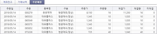 다음으로는 영웅문4 HTS에서 나온 것 입니다. 여기서는 1번 손실이 났으며, 2번 그 이상의 이익이 나서 그걸 만회한 것을 볼 수 있습니다. 다만, 유유제약의 경우에는 좀 처럼 가격이 살아나지 않아서, 도저히 뭐가 안 되는 것이 아닌가 하는 생각이 듭니다.