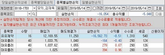 이 손실이 왜 나왔느냐 하면, 이게 순전히 비싸게 사서 싸게 팔아서 생긴 것이 아니라, 수수료와 세금을 제외하니 마이너스가 되어서 나온 것 입니다.