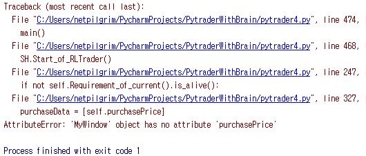 그리고 나서 pytrader4를 실행시켜 보았습니다만, 문제는 위 스크린샷과 같이 에러가 뜨는 것을 확인할 수 있었습니다. 이게 무슨 에러인지 한번 보니........