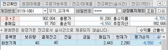 먼저 지난주에 어떻게 40주는 보유하는데 성공했는 화천기계의 주가를 가지고 오도록 해 봅니다. 일단 이 종목은 평균회귀를 더 이상은 하지 않는다고 했지만, 그래도 혹시나 라는 것이 있어서 한번 가지고 오도록 합니다.