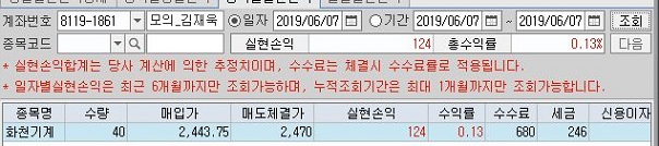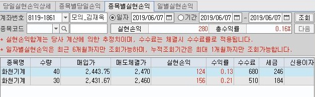 그리고 한번 일별종목별 실현손익에 대한 윈도우를 한번 열어보니까, 위 스크린샷에서 볼 수 있는 것처럼 제대로 수익이 나오기는 나오는 것을 확인할 수 있었습니다.