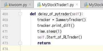 그리고 나서 일단 MyStockTrader1에서 위 스크린샷과 같이 pympler를 가지고 오는 과정을 넣어 주도록 합니다. 이렇게 함으로써, 일련의 작업을 시작합니다.
