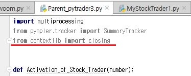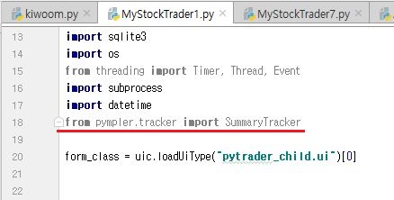 그리고 나서 일단 MyStockTrader1에서 위 스크린샷과 같이 pympler를 가지고 오는 과정을 넣어 주도록 합니다. 이렇게 함으로써, 일련의 작업을 시작합니다.