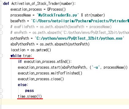 하다하다 안 되어서 기존에 있던 while과 sleep을 도로 불어오는 작업을 하도록 합니다. 그리고 자세히 보시면 에러가 있는데, 이것도 고쳐 주도록 합니다.