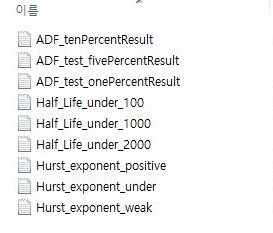 언제나의 과정이라면 과정이라고 할 수 있는 평균회귀 테스트를 1주일마다 반복하는 단계가 이번에도 왔습니다. 이렇게 멀티 프로세스를 진행할 수 있는 것이라고 하면, 이 과정을 3개의 프로세스에 나누어서 진행해 볼 수도 있었습니다만, 너무 일이 많다는 생각이 들어서 이번주는 그냥 하던데로 하기로 했습니다.