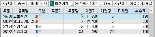 이렇게 해서 모두 이익으로 나왔는데, 어떻게 해서든 간에 수익이 2193원으로 나오는 것을 볼 수 있었습니다. 즉, 중간에 끝까지 가지 않아도, 어찌어찌 해서는 수익이 나오기는 나온다는 것을 알 수 있습니다. 이게 구조적으로 단타매매를 막아놓은 모의투자지만, 그래도 이렇게 해서 수익이 나오는 것을 봐서는, 나중에 실전투자에 들어가서는 어떻게 나올 지 모르겠습니다.