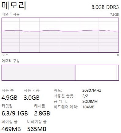 그리고 나서, 모의투자에 들어가고 나서, 위 스크린샷에 나오는 것처럼 메모리가 사용을 하고 있는 것을 볼 수 있습니다. 일단 파이참을 사용해서 인지, 아니면 막 다시 시작을 하고 나서 해서인지 몰라도 4.9기가가 사용되는 것을 볼 수 있습니다.