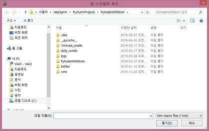 스크립트를 실행 시키려고 하니까, Vim 스크립트 코드라고 하는 Vim파일을 선택하라는 것을 볼 수 있었습니다. 일단은 잘 모르니까, 하는 수 없이........