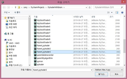 먼저 제가 작성을 이미 하였는 parent_pytrader3.py를 불러 오도록 해 봅니다. 그런데 저는 이 단계에서 아직도 모르기는 몰랐습니다.