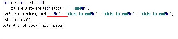 그래서 결과를 txt파일에 저장하기 위해서 writelines를 사용하는데, 그 때 str()메서드를 이용해서 한번 문자열로 바꾸어 주도록 합니다.
