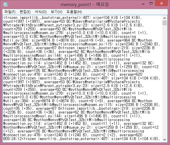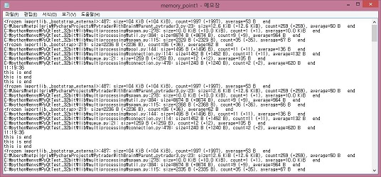 이렇게 해 주는 것으로 이제 서야 제대로 읽을 수 있는 문서의 내용이 완성이 되었다는 생각이 듭니다. 그런데 이대로는 알아보기 힘이 많이 듭니다. 아무튼 이제 tracemalloc을 사용해서 어디가 메모리 누수가 있는지 알아보는 과정의 첫 단추를 끼우는데 성공하기는 했는데, 문제는 이걸 분석해야 하는 일이 남아 있습니다.