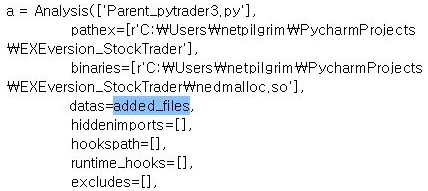 그래서 한번 spec파일로 가서, added_files란느 것을 한번 없애고, []로 만들어 보는 시도도 했습니다만, 별 소득이 없기는 없었습니다.