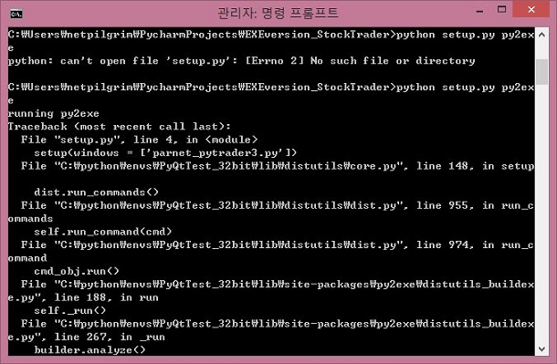 그래서 하는 수 없이 위스크린샷에서 볼 수 있는 것처럼 한번 더 방향을 우회해서 이번에는 py2exe라는 것을 설치해서 이거라도 도전해 보고자 했습니다.