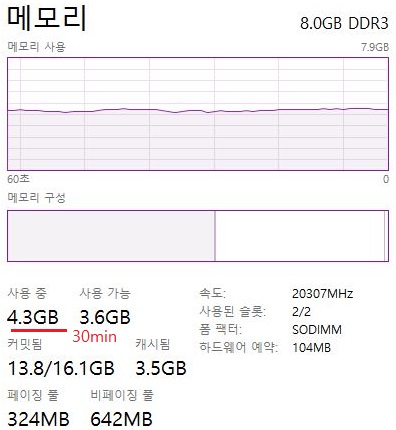 30분만에 사용하는 메모리의 양이 4기가를 넘어가 버리는 문제를 일으킨 것 입니다. 분명히 저는 파이참을 사용하지도 않았는데 이런 문제가 벌어지는 것을 확인할 수 있었습니다. 그것도 분명히 gc.collect()와 nedmalloc()이 둘다 있는 상황에서도 이렇게 되는 것을 볼 수 있었습니다.