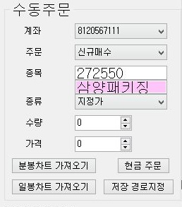 가장 먼저 할일은 뭐니뭐니 해도 10개 종목의 1분봉 차트를 가지고 오는 것이 될 것입니다. 일단 pytrader를 실행시켜서 하나씩 가지고 오도록 합니다.
