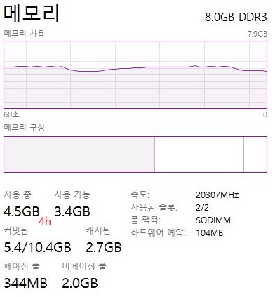 4시간 정도 지나고 나서야 어느정도 메모리 사용량이 200MB정도 올라간 것을 볼 수 있었습니다. 그래도 아지까지 윈도우가 얼어버리는 현상을 보이지 않고 있습니다.