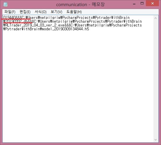 다음으로는 위 스크린샷처럼 communication.txt의 내용을 변경해 주어야 합니다. 종목코드와 데이터 베이스 이름을 하나하나 변경해 주도록 합니다.