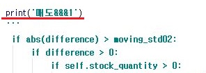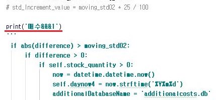 먼저 할일은 일단 왜 이렇게 cmd상에서 실행을 시켰더니, 매매가 일어나지 않는지에 대해서 한번 조사를 해보려고, 위 스크린샷과 같이 print()함수만 남기고 다 주석처리를 하였습니다.