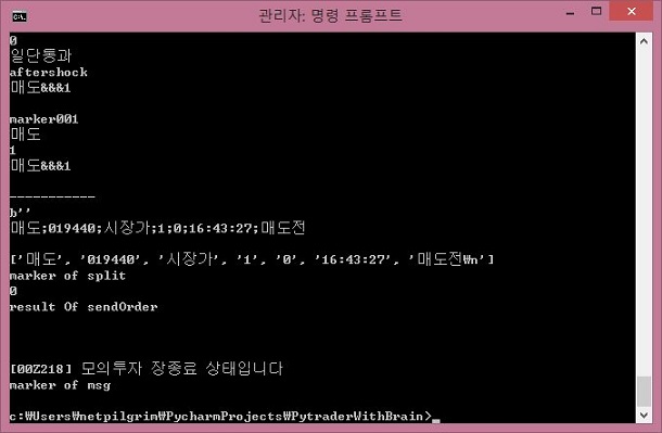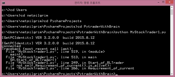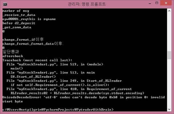 다음으로는 한번 위 스크린샷처럼 그냥 MyStockTrader1.py를 실행시켜 보았더니, 아무런 문제가 없이 실행이 되기는 되었습니다.