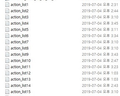 일단 장이 종료될 때까지 15개의 action_list.txt가 생성이 되는 것을 확인할 수 있기는 있었습니다. 그런데 문제라고 해야 할까요? 하나하나를 살펴보면 문제가 발견되었습니다.