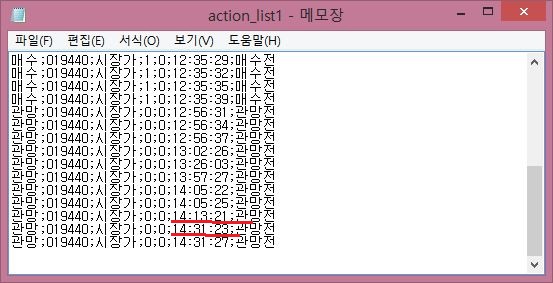 일단 장이 종료될 때까지 15개의 action_list.txt가 생성이 되는 것을 확인할 수 있기는 있었습니다. 그런데 문제라고 해야 할까요? 하나하나를 살펴보면 문제가 발견되었습니다.