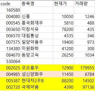 다음으로는 SecondClass에서 나온 것인데, 여기서는 충격적이게도 겨우 1개의 종목만이 모의투자 적합으로 나왔으며, 그나마 거래량을 줄여보니, 2개의 종목만이 더 추가가 되었습니다.