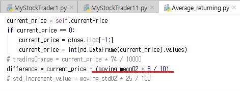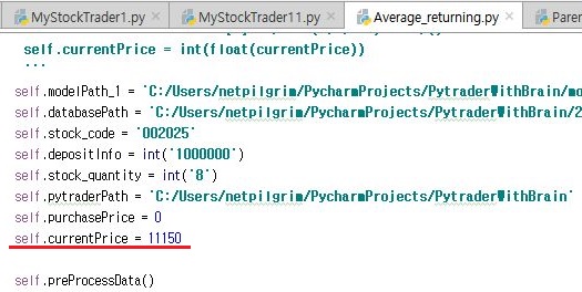 그런데 계속해서 매수가 나오지 않아서, 한번 Average_returning에 가서, 유력해 보이는 현재가를 입력하는 과정을 거쳐 보도록 합니다.