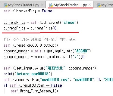 그래서 위 스크린샷과 같이, 이번에는 close라고 현재가를 가지고 오는 과정에서 문제가 생긴 것이 아닌가 하는 생각이 들었습니다. 그래서 이번에는 위 스크린샷에서 나오는 것처럼 currentPrice에서 바꾸어 주도록 합니다.
