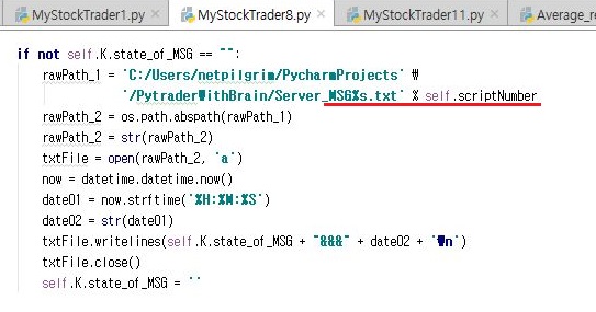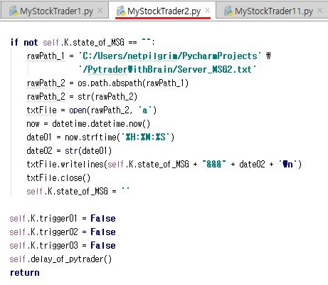 그리고 나서 kiwoom.py로 가서, 위 스크린샷에서 나와 있는 것처럼 일단 클래스의 변수로 state_of_MSG라는 것을 공백처리 해 줍니다.
