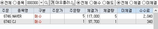 다음으로는 모의투자가 시작한지 얼마 되지 않은 시점에서 위 스크린샷에서 볼 수 있는 것처럼 제대로 매수 결정을 내렸고, 진짜로 HTS상에서 체결이 어루어 진 것을 볼 수 있었습니다.