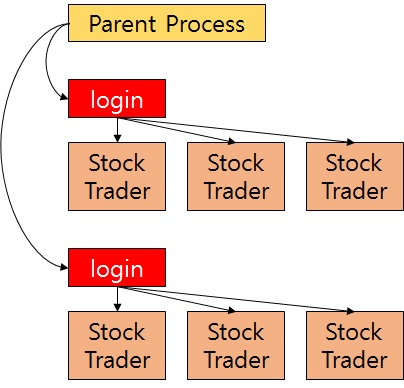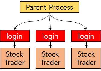 그래서 바꾸고자 하는 방식에는 위 스크린샷처럼 로그인을 한번 하고나서, 그 다음에는 StockTrader를 여러번 돌리도록 하는 것 입니다.