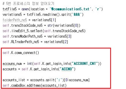그리고 나서 로그인을 하고나서 계좌정보를 얻어오는 과정을 밟아 주도록 하는 것을 잊어 버리면 안되기는 안됩니다. 이렇게 메서드를 지정해 주도록 합니다.