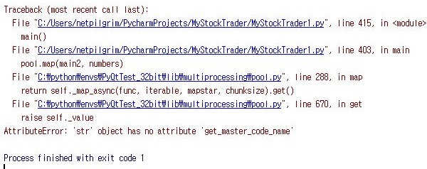 그래서 기존에 있는 것처럼 다시한번 Kiwoom()을 다시 지정해서 실행을 하도록 만들어 주도록 합니다. 이렇게 하면 이번에는 성공적으로 작동을 할 것이라 생각을 했습니다만......