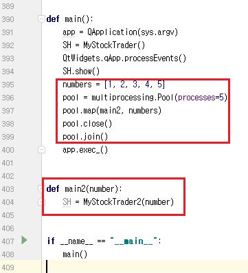 다음으로 할 일은 위 스크린샷처럼 첫번째 메서드에서 멀티 프로세싱에 들어가 보도록 학소, 두번째 메서드에서 객체를 인스턴스화 시키는데, 이걸 여러번 하도록 만들어 줍니다.