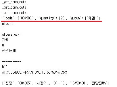 이제서야 매도라는 것으로 나오는 것을 확인할 수 있었습니다. 이렇게 해서 정보를 가지고 오는 것까지는 어떻게 성공적으로 나올 수 있었습니다만, 문제는 아직도 이 데이터를 가지고서 제 알고리즘 트레이딩이 처리를 하지 못하는 단계에 있다는 것 입니다.