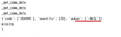 그래서 종목코드는 위 스크린샷처럼 str로 바꾸어 주도록 하고, 다음으로 주문상태로 만들어 이전처럼 시장가 같은 정보가 아니라 매수/매도 상태를 알아보도록 만들어 주도록 합니다.