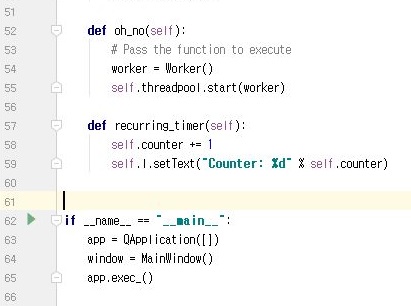 그리고 나서 위 스크린샷처럼 기본적으로 있는 카운터와 다른 스레드를 실행시키기 위한 기본적인 조건만 갖추고 나서 제대로 되는지 테스트 해 보도록 합니다.