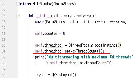 다음으로는 멀티 스레딩에서 스레드의 갯수를 늘릴 수 없는지에 대해서 한번 알아보고자 합니다. 일단 setMaxThreadCount()에서 10으로 갯수를 정해주고 나서 한번 다음의 작업을 하도록 해 봅니다.