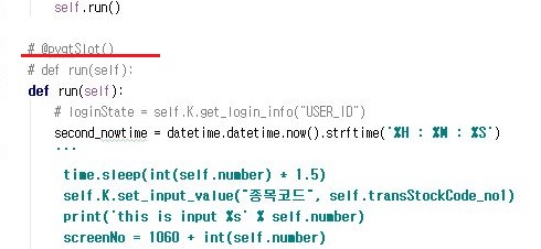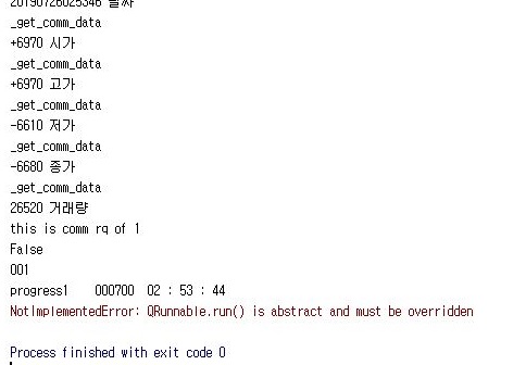 이렇게 하자 두번씩이나 주식 기본정보를 요청하는 일은 없어졌습니다. 다만 run메서드가 없다 보니 이에 관한 에러 메세지가 뜨는 것을 확인할 수 있었습니다.