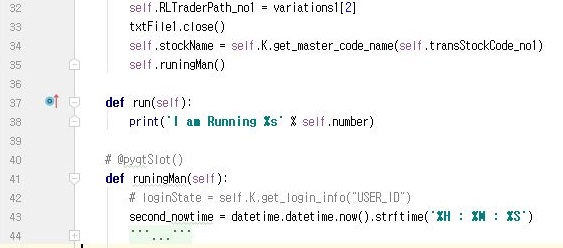 그래서 어디가 문제인지 가만히 보니, 위 스크린샷처럼 원래는 run이 있었는데, 문제는 QRunnable이 실행되면 run이 자동으로 실행이 된다 = 같은 메서드가 2번이나 실행이 되어서 발생하는 문제였습니다. 그래서 아예 runningMan으로 바꾸어 주도록 했습니다.
