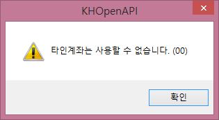 그런데 작업을 하던 이때에 키움증권 서버에서 작업을 하고 있는 것인지, 아니면 다른 문제가 있었는지는 모르겠습니다만, 일단 타인계좌는 사용할 수 없다는 에러 메세지가 나오고 있습니다.