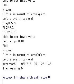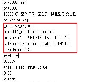 다음으로 해야 할일은 위 스크린샷처럼 계좌의 기본정보를 가지고 오는 내용이 있는데, 이 메서드 역시 첫번째로 실행이 되는 스레드가 아니면 실행을 하지 말고, 그냥 첫번째 스레드가 가져온 정보를 공유하도록 합니다. 이제 이게 제대로 작동이 되는 것을 확인할 수 있었습니다. 다만, 앞으로 남은 코드는 아직도 많이 남아 있습니다.