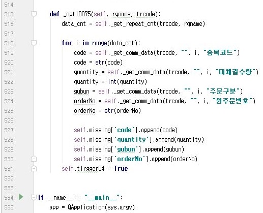그리고 당연하다면 당연하게도 Kiwoom이라는 클래스 안에서 이 미체결 데이터를 가지고 오는 것에 대한 작업도 일어나야 합니다.