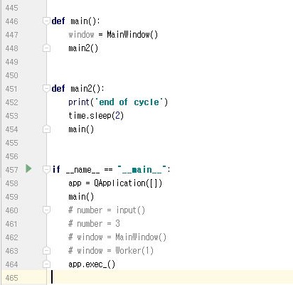 그래서 del명령어를 써서 기존에 있던 클래스의 인스턴스를 제거하는 과정에 들어가 보도록 했습니다. 그리고 나서 과도한 사이클을 돌수 있는 것을 방지하고자 일단 2초 정도 쉬어 가도록 만들어 주었습니다.