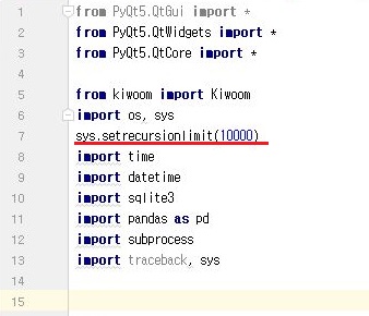 먼저 위 스크린샷처럼 sys.exit()를 중지시켜 보도록 합니다. 이렇게 하는 것으로 계속해서 작동을 되기는 되는데 문제가 하나 있습니다. 키움증권 OpenAPI는 로그아웃기능을 제공하지 않는 다는 것 입니다.