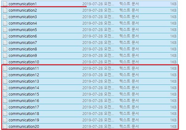 먼저 해야 할 일이라면 위 스크린샷에서 볼 수 있는 것처럼 communication.txt를 늘리는 것이라고 할 수 있습니다. 일단 위 스크린샷에서 볼 수 있는 것처럼 1번 communication.txt를 복사해서 이름만 바꾸는 것으로 20개 까지 늘려 주도록 합니다.
